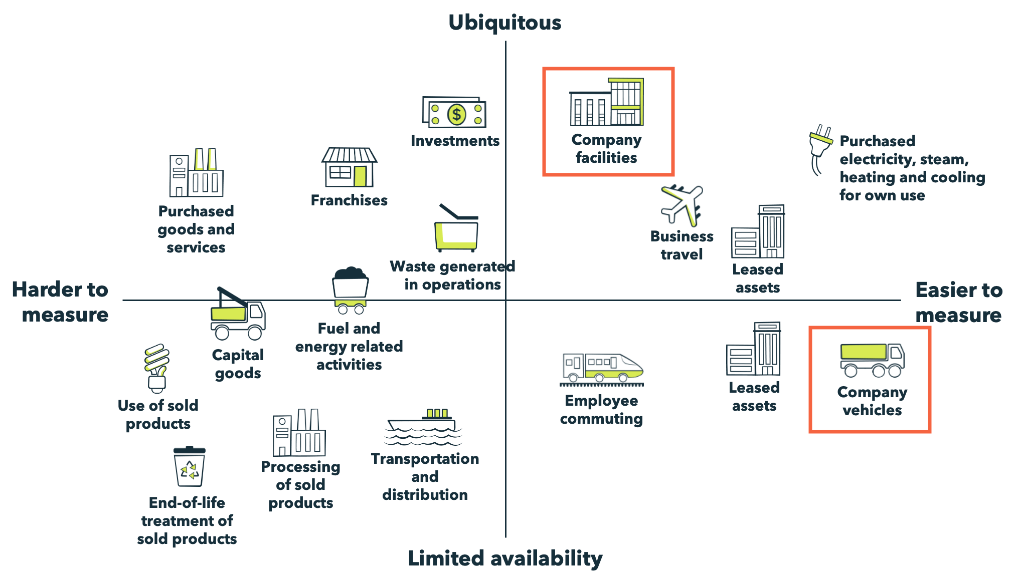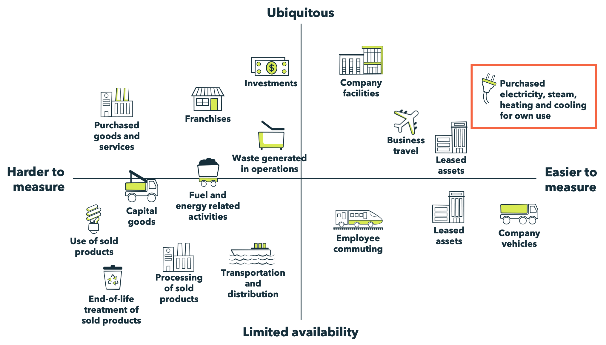 Scope 2 includes purchased electricity, steam, heating, cooling power. This is data that can be easily accessed from utility bills.