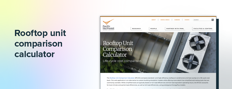 The rooftop unit comparison calculator (RTUCC) from Pacific Northwest National Laboratory helps you compare standard and high-efficiency rooftop air conditioners and heat pumps on a life-cycle cost basis. The tool factors in local climate, part-load performance, and typical building use with prototypical EnergyPlus models. The result gives you more detail than a simple full-load calculator.