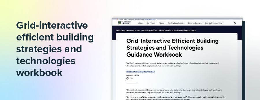 The grid-interactive efficient building strategies and technologies workbook from DOE’s Federal Energy Management Program is a practical guide to planning GEB retrofits. It explains core concepts and helps you identify, screen, and prioritize strategies and technologies. The guide includes upgrades to electrification and controls. It is excellent for moving from an idea to a project shortlist.