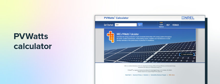 The PVWatts calculator estimates energy production for grid-connected solar PV systems. You can enter a location, system size, tilt, azimuth, and expected losses to get monthly and annual AC generation, capacity factor, and a quick cost estimate.