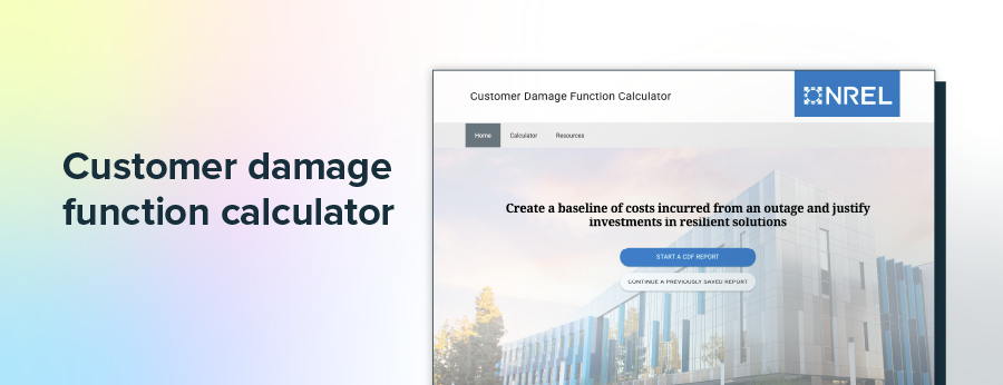 The customer damage function calculator helps you estimate the dollar impact of power (and water) outages at your site. Built by NREL with support from DOE’s Federal Energy Management Program, the free web tool establishes a baseline for outage risk. It shows how costs increase with outage duration and quantifies the potential value of resilience investments.