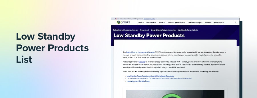 For federal procurement, the list simplifies compliance with FAR 23.107-3: buy items that meet FEMP’s standby recommendation. If none exists for a listed product, you can choose models that use no more than one watt in standby. Energy managers can reference the database during sourcing to document compliance and justify the total cost of ownership.