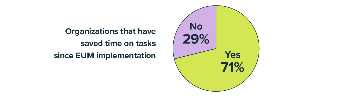 The vast majority of respondents saved time on tasks that used to be done manually once they began using EnergyCAP Utility Management.